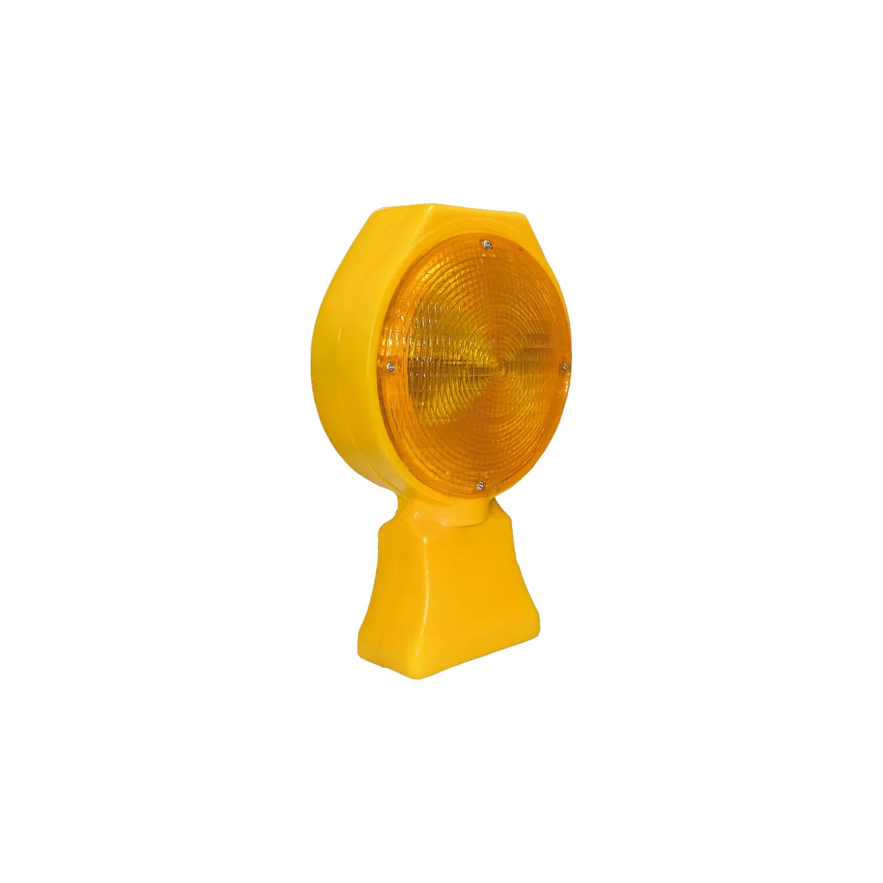 Fabricada en polietileno color amarillo con mica frontal en metil metacrilato translúcido ámbar. Tecnología LED roja que emite luz parpadeante a 60 destellos por minuto. Encendido manual mediante interruptor y sistema inteligente ON/OFF. Lámpara de destello con alimentación electrónica mediante 2 baterías "D" alcalinas integradas en un paquete (Battery Pack), garantizando su efectividad durante un mínimo de 150 días constantes. 1 Cara.